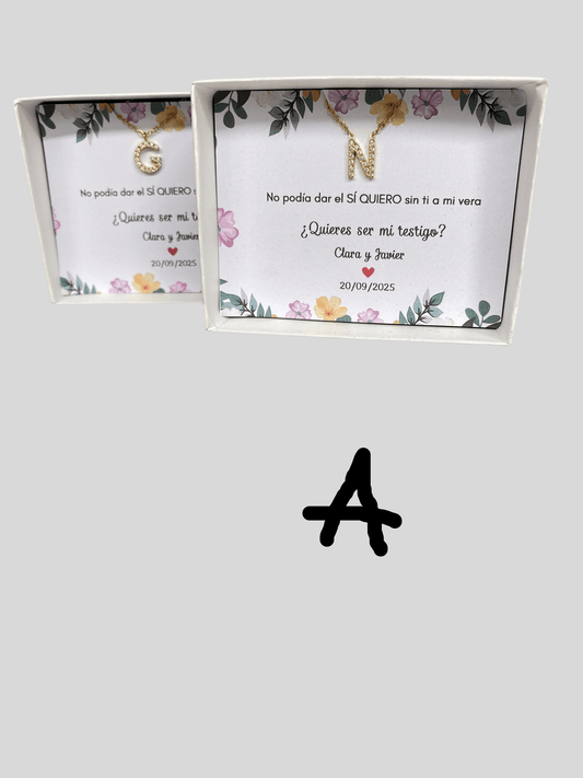 Caja “¿Quieres ser mi testigo?” – Taza, flor preservada y collar con inicial