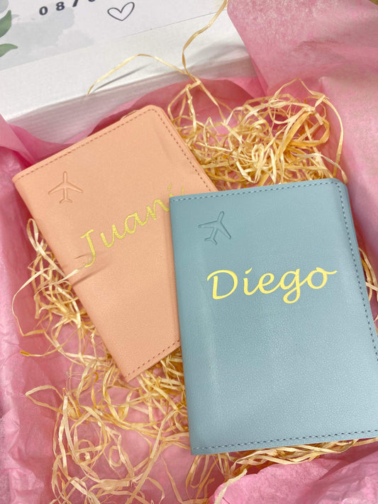 Pack 2 FUNDAS DE PASAPORTE CON INICIALES Y CAJA PERSONALIZADA