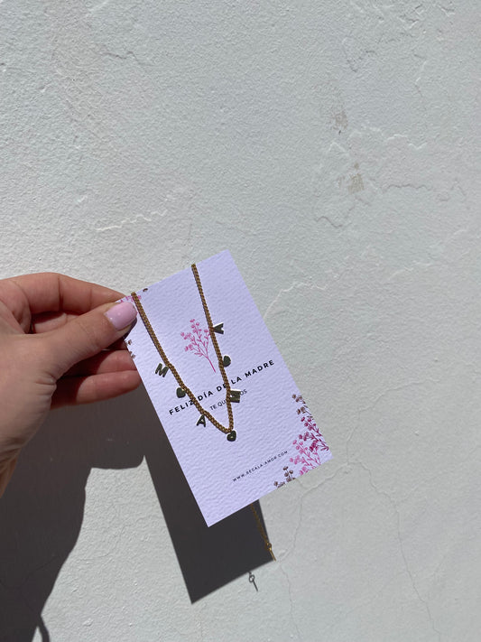Collar inicial brillo con tarjetita y caja personalizada dia de la madre