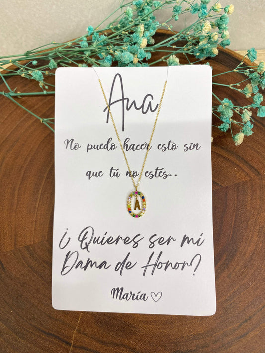 Tarjeta personalizada con collar inicial damas de honor 🌸