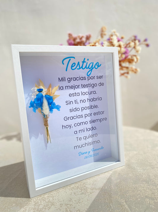 Cuadro personalizado para testigo con flor preservada – Regalo emotivo de boda