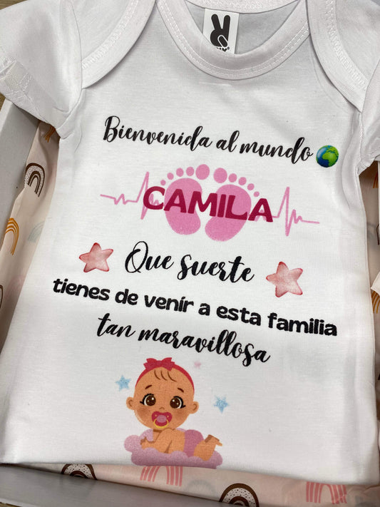 Pack recién nacido René + Body + Caja dientes | Regalo bebé original