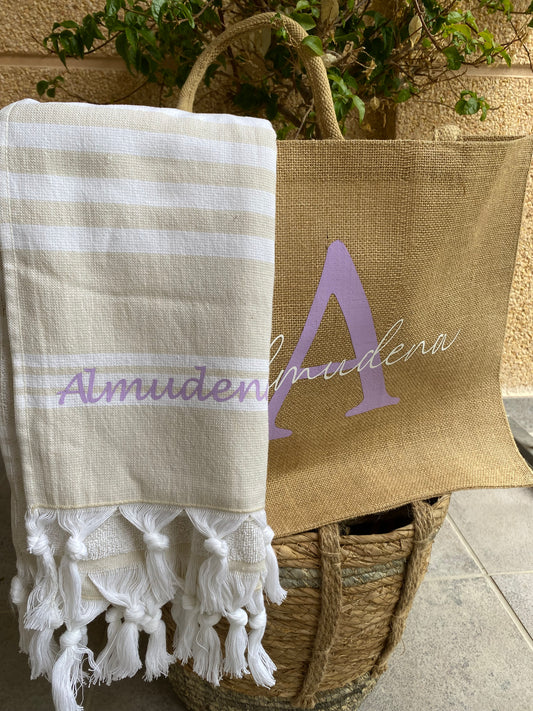 Pack verano Capaza, toalla, peine , neceser y botella personalizada