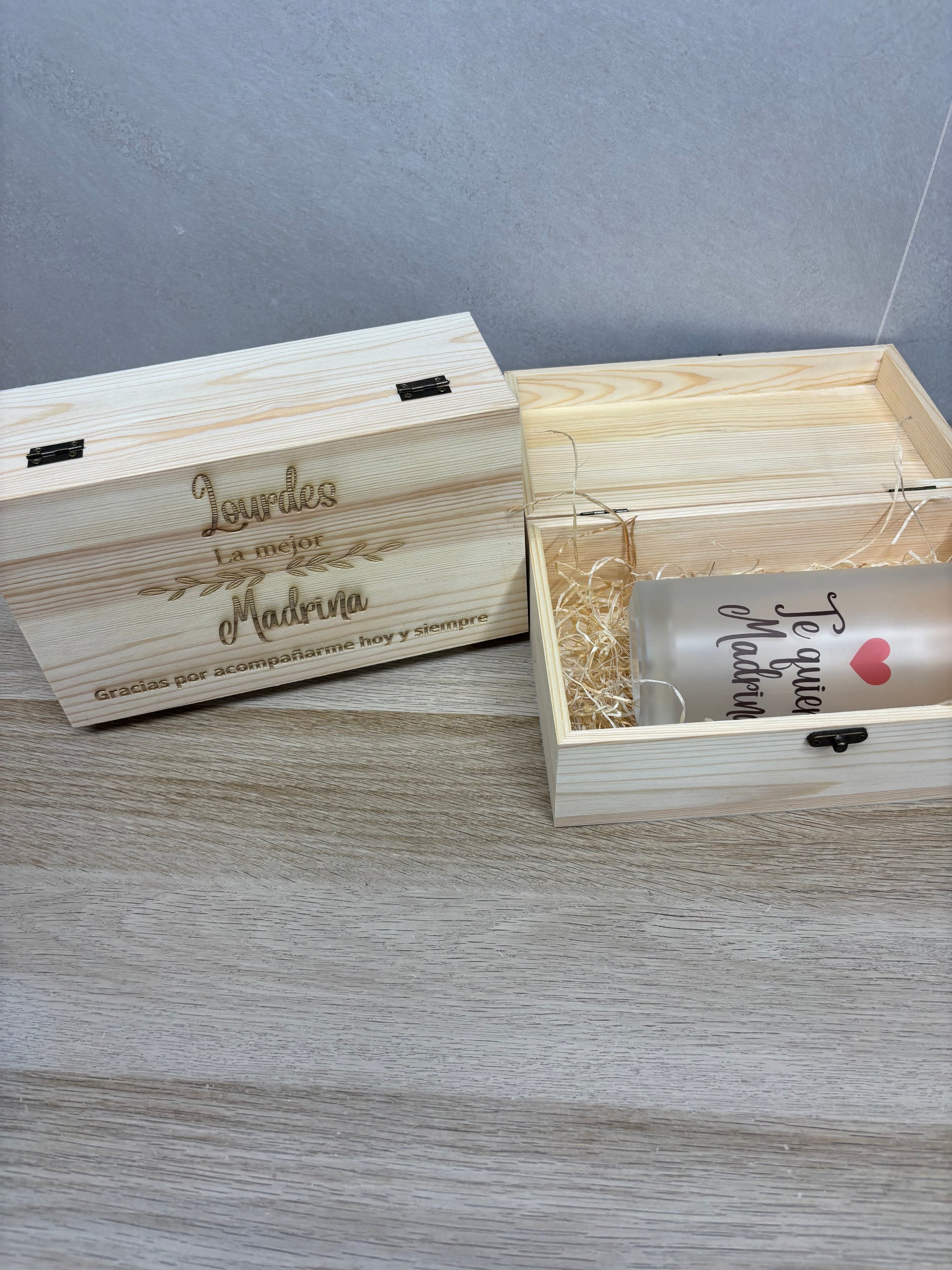 Sorprende con una caja regalo personalizada con jarra de cerveza grabada. Ideal como detalle para madrinas, padrinos o personas especiales. Envío rápido y personalización incluida.