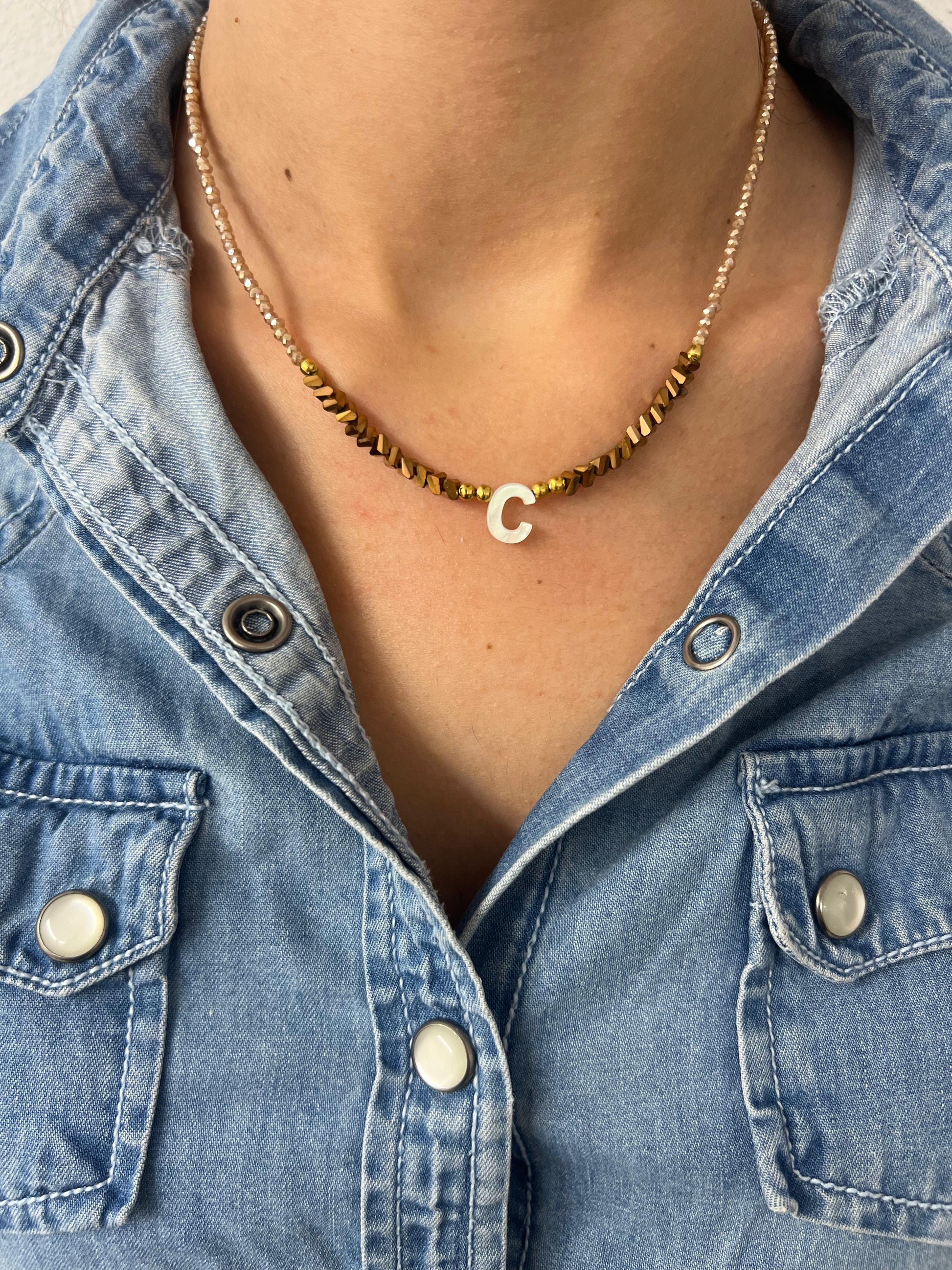 Este collar con inicial es el accesorio perfecto para llevar un toque personal y elegante contigo todos los días. Con un diseño minimalista y detalles de bolitas que añaden un toque moderno, es ideal para regalar o para complementar tu estilo único.