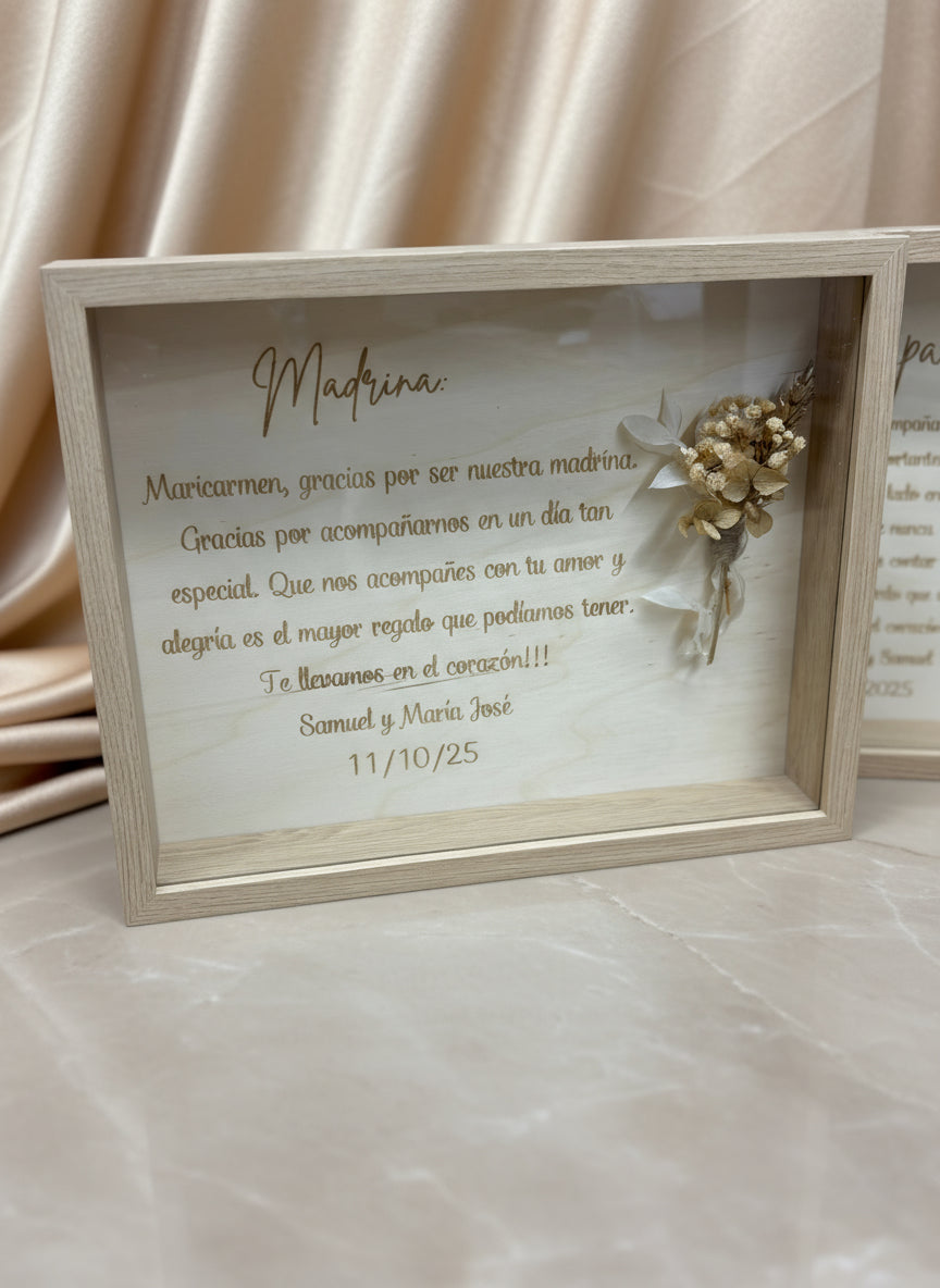 Cuadro personalizado en madera con flor preservada | Regalo decorativo
