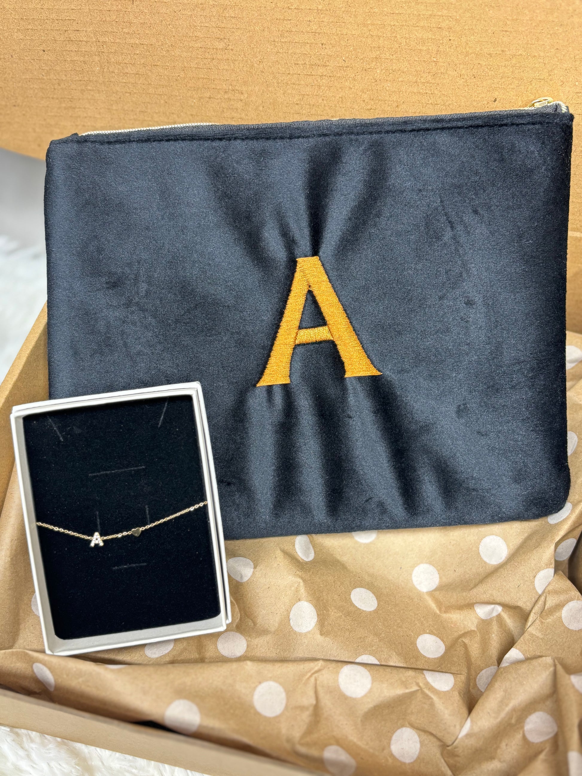 Este pack es el detalle perfecto para sorprender a esa persona especial con algo práctico, bonito y lleno de significado. Un neceser elegante para el día a día y una pulsera con inicial que convierte un simple complemento en un recuerdo para siempre.