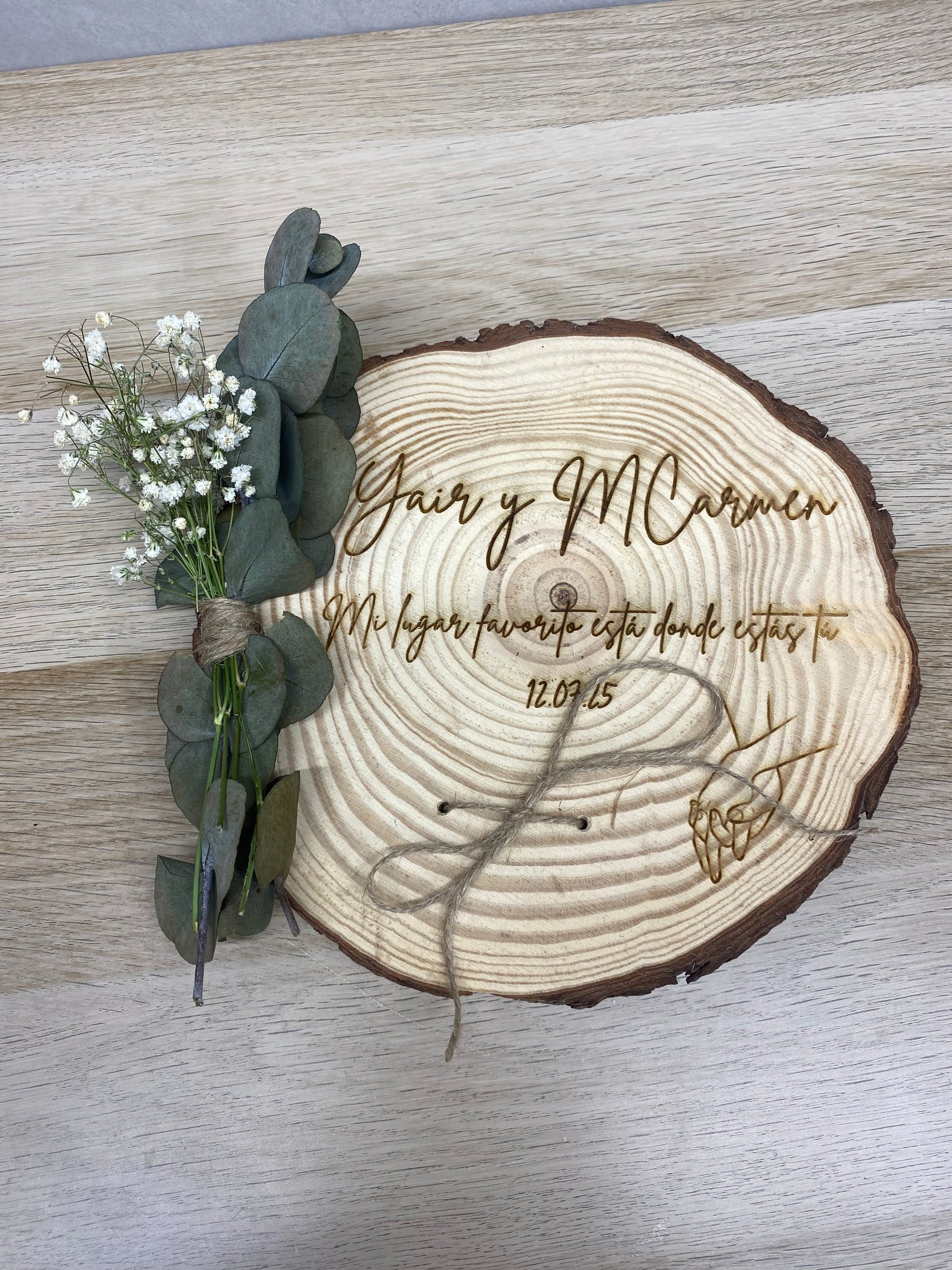 Celebra tu boda con un detalle lleno de significado: nuestro Porta Alianzas de Madera Personalizado. Hecho con madera natural y presentado con grabado personalizado, este porta alianzas no sólo guarda vuestros anillos: añade encanto, estilo rústico y un toque emocional a vuestra ceremonia.