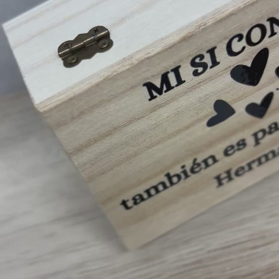 Texto grabado en la caja (nombre de la hermana, fecha de boda, frase especial)